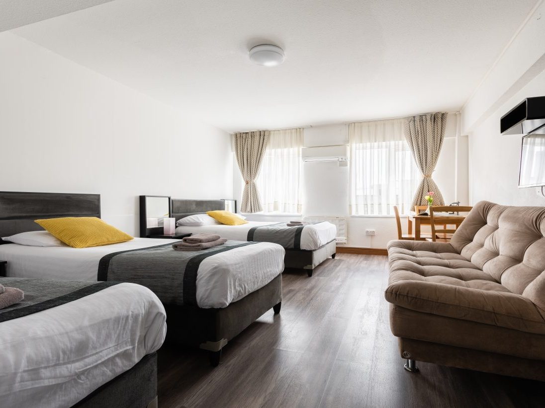 Our Triple rooms for 3 people come equipped their own bathrooms, 32 Inch TV and air conditioning units and tea and coffee facilities.